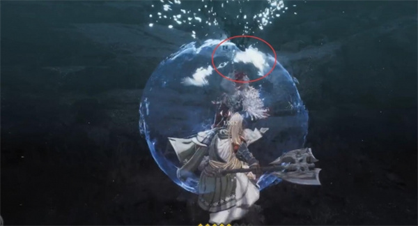 2、武器发光后攻击前方,过一会跳到场地中心继续向前攻击,这里直接跳起来打;