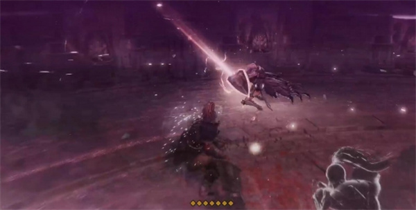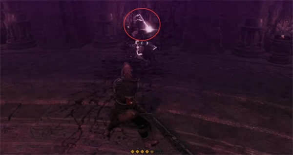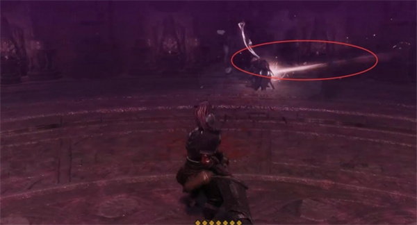 2、等到boss手上出现白色闪电的时候注意抬手,boss会向前攻击,快速闪到侧边;