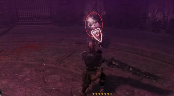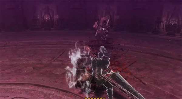 6、剩血皮的时候再次擦盾附上微弱白光向前挥砍四次后起跳下砸,重复上面的操作。