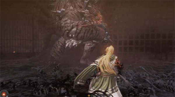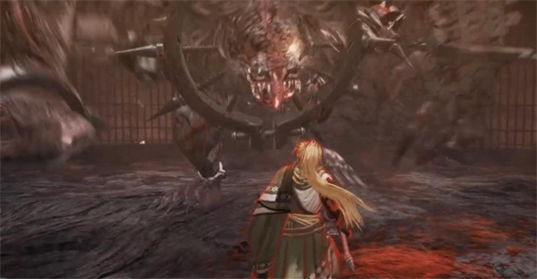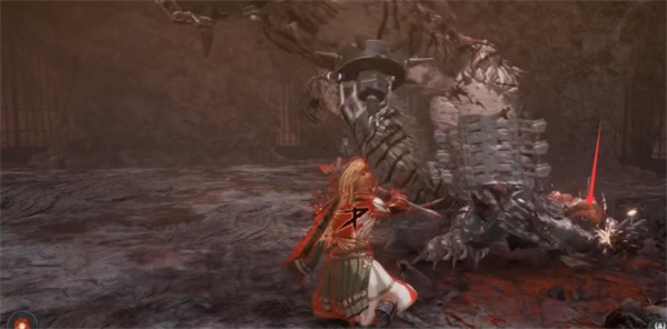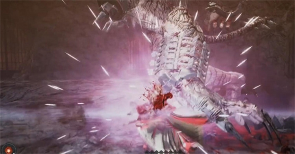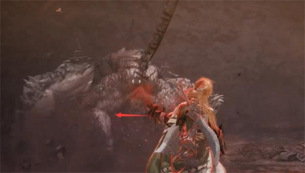 3、回身砍一刀后快速向前冲刺,注意躲开,等到起身后会闪红光注意弹反;