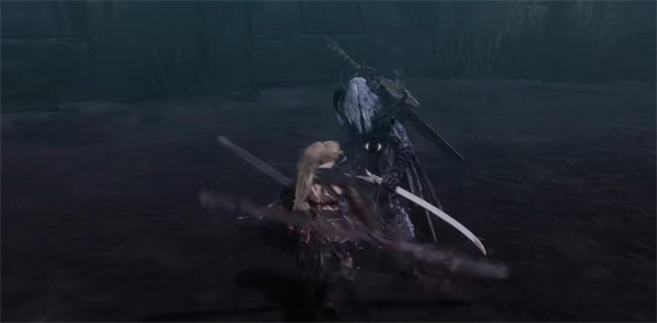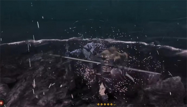 4、屏幕出现白光时boss向前挥砍两次,并与玩家拉开距离,冲过来连续攻击八次,这里连续弹反攻击;