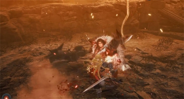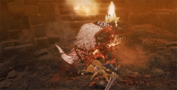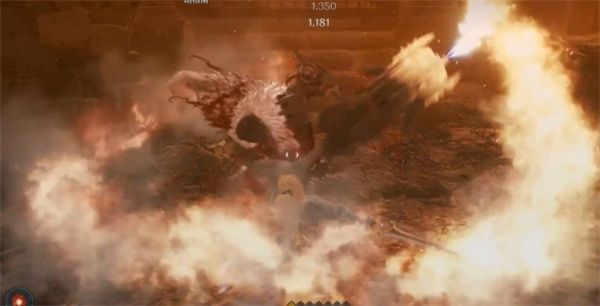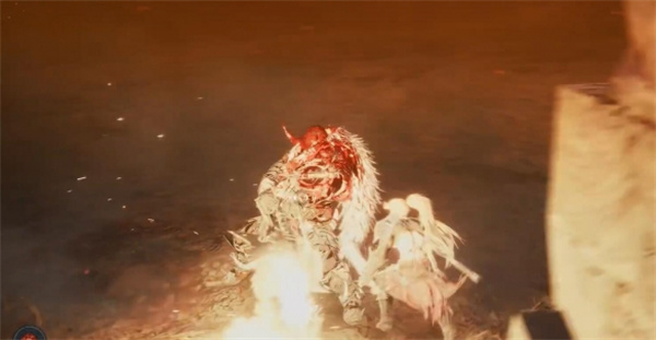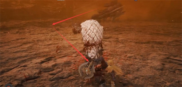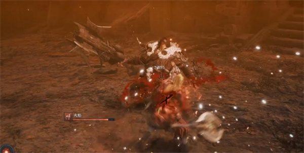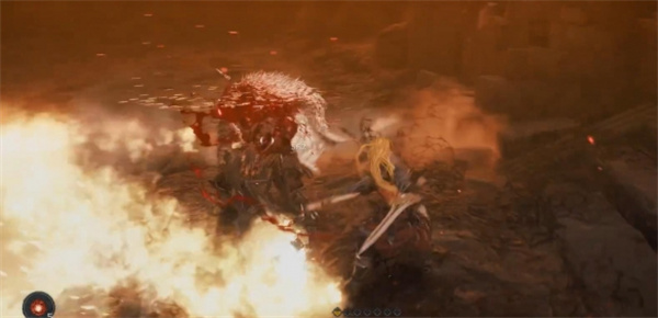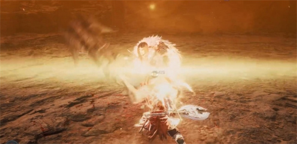 5、招式不变重复上述操作直到打到三分之一血,boss起身出现一个弧线火圈;
