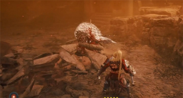 4、boss腿部发光时远离腿正对的区域直接在侧边打,过几秒抡锤子+翻滚+抡锤子+回身抡锤子,第四下闪黄光;