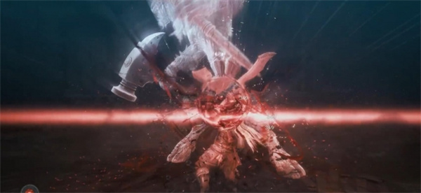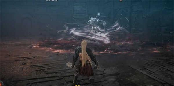 3、boss闪红光冲过来,格挡,打的时候注意远离钉子那片区域,boss连招同上;