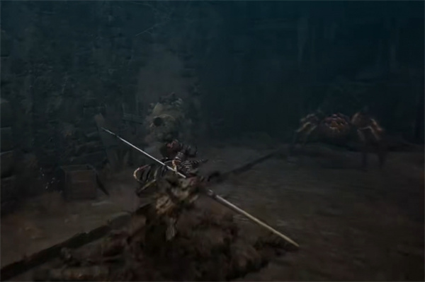 12、往前面跑一小段,看到闪闪发光的冥界气息,从头上跳下来一只蜘蛛。
