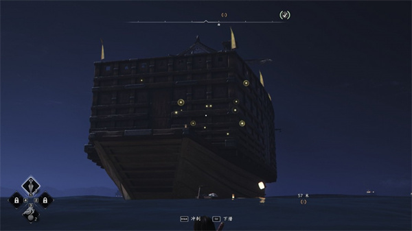 图p2中红色标记的地方,来到这可以看到一艘船(图p3和p4),然后爬上这艘船可以看见一个类似阁楼的地方(图p5),潜行到这座阁楼的二楼,可以看见一个宝箱,里面装着的就是血影(图p6)。
