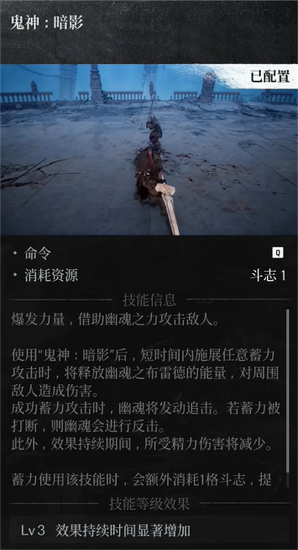 非必点技能,可以利用这里技能进行输出,化解敌人攻击后会恢复消耗的斗志。