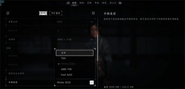 玩家在任意游戏页面,按ESC到设置-视频,将升频从DLSS改回默认的自动。