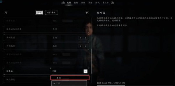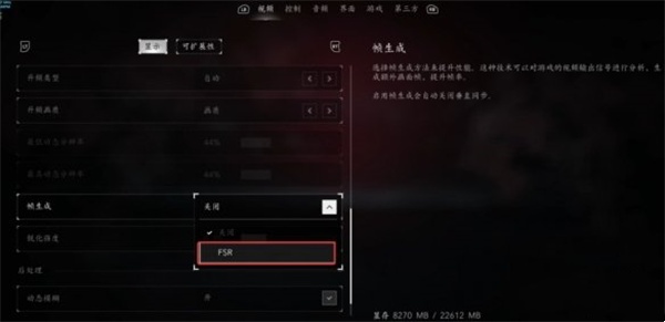 重新进入游戏后,不要着急,把帧生成再改成FSR。