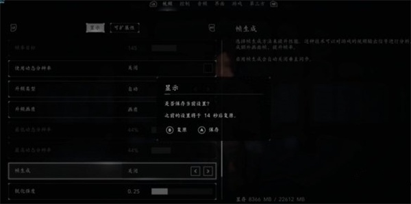 设置完成后,保存退出游戏,再重新进入就能看到帧生成的DLSS选项了。