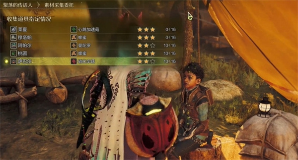 做完这些采集员的首个任务并提交,之后游戏会开启快捷采集功能,我们直接找个人帐篷旁的纳塔对话即可委托他们采集素材。