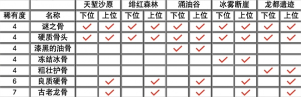 2、在天堑沙原、绯红森林、涌油谷和冰雾断崖和龙都遗迹的上位骨冢都可以对古老龙骨进行采集。