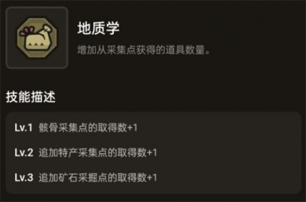 3、推荐大家在采集骨头的时候升级1级的地质学,可以提升骸骨的采集点的取得数。