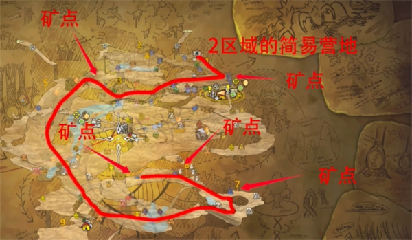 4、这里就为大家整理了一条龙都已经一条龙的矿点采集路线,大家可以沿着路线进行采集。