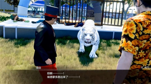 5、人干完事还没完,打斗中混混撞开了笼子,老虎出笼真岛又免不了一场恶战。