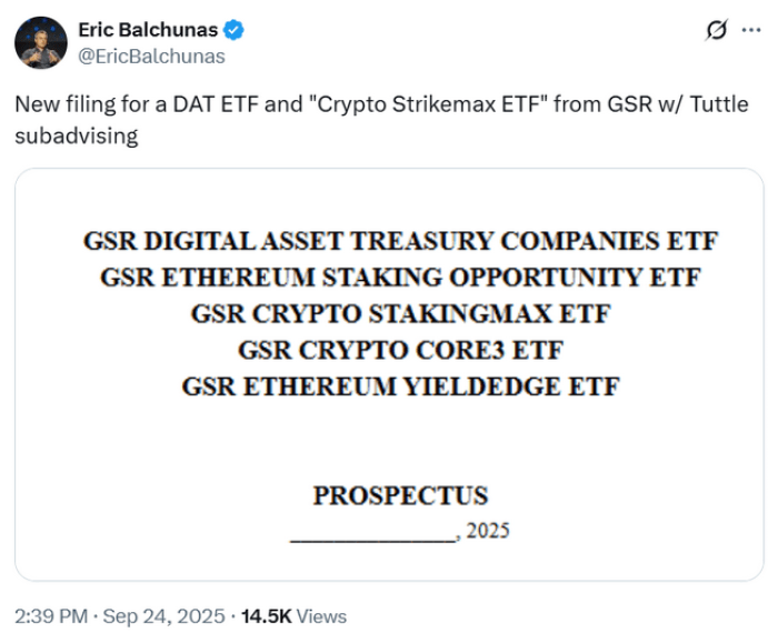 您懂的。如今DAT数量已足够多,华尔街开始投桃报李。最新备案文件显示,一个完全由DAT组成的新型加密ETF正在筹备。
