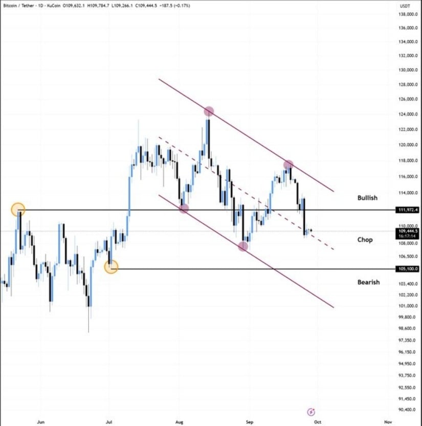 BitBull指出突破111,972美元可重振多头势头,反之则将陷入"震荡区"延续横盘整理。下行方向105,100美元被视为下一重要支撑,跌至此位将强化短期看跌通道。