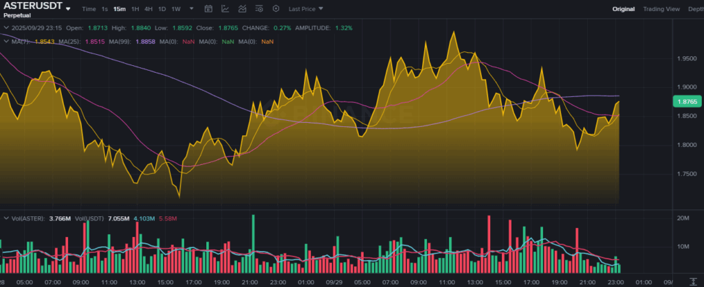 反弹阶段成交量激增,表明市场存在择机介入现象。价格在早盘急跌后显现整固迹象,当前市场动态印证Aster正处于弱势与复苏的平衡点。