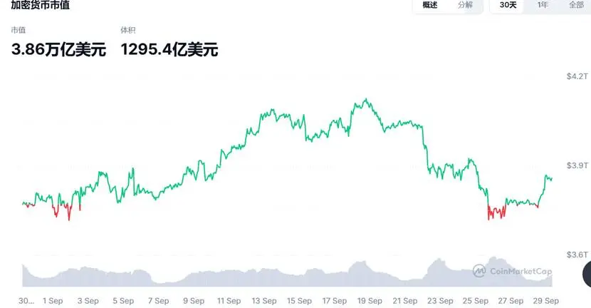 九月降息落地后,加密市场整体延续“九月魔咒”呈现波动下行趋势,全球市值从 9 月 19 日高点 4.13 万亿美元最低跌至约 3.72 万亿美元,几乎抹平了上半月的所有涨幅,总市值蒸发超 4000 亿美元。其中比特币和以太坊等主流币种价格承压,但上周末小幅反弹后形成短期底部。月末已至,接下来的市场将受哪些因素和大事件的影响、机构如何看待接下来的市场?