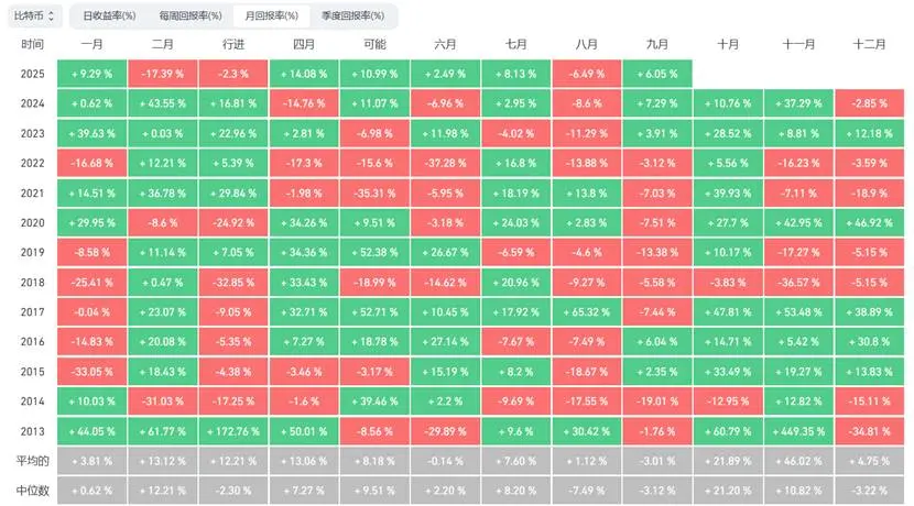 整体而言,上周加密市场受九月魔咒拖累,资金净流出、总市值缩水,但周末价格企稳和情绪回暖,市场从恐慌转向谨慎乐观。从历史数据来看, 2013-2024 年 BTC 在 10 月份的平均回报率约为 +21.89% ,远高于 9 月的 -3.91% ,投资者或倾向于押注“ Uptober ”窗口。
