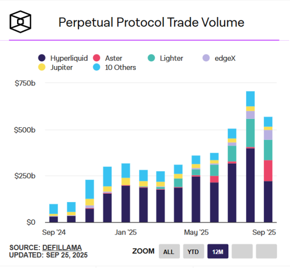 这种极端集中并非市场自然选择的结果,而是资本筛选和倾斜的产物。例如,Aster 在 TGE 后短时间内获得近 10% 的市场份额,其「空降式成功」充分证明了背景和资本的决定性作用远超技术创新。