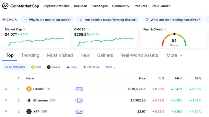 据CoinMarketCap数据,市场资金因此涌入比特币等加密货币,总市值上涨4.01%。