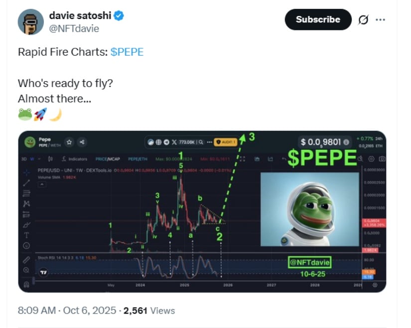 该图表揭示PEPE的潜在突破机会与市场热情升温。来源:X平台@davie satoshi