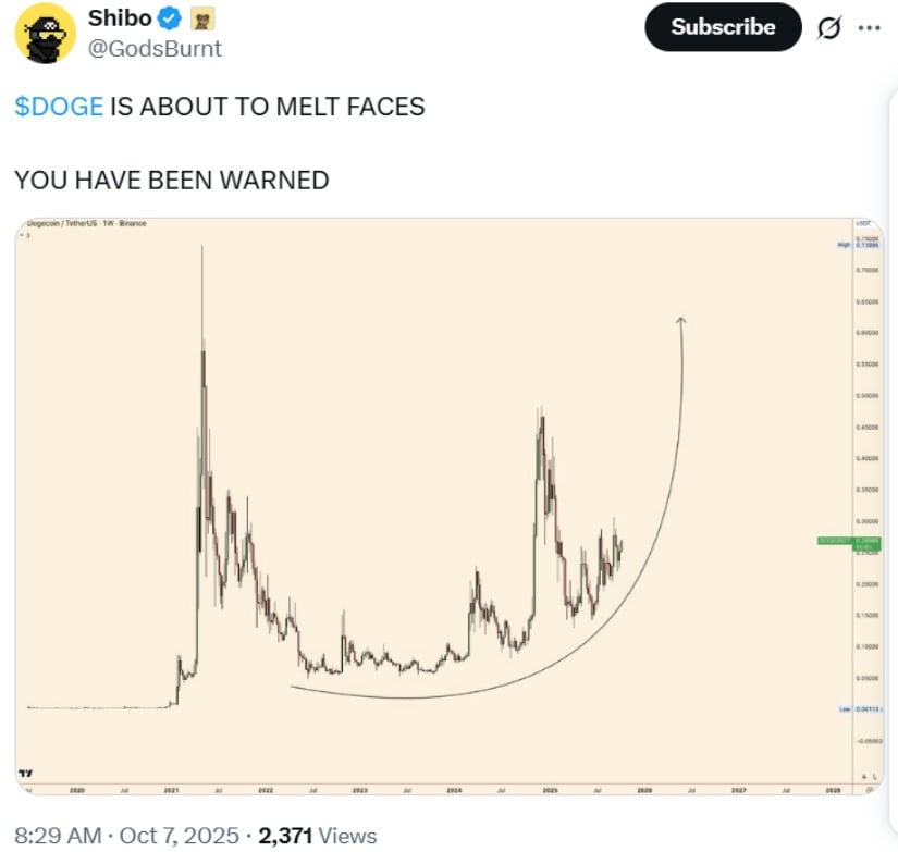 这种观点对立凸显了严谨图表分析与MEME驱动乐观主义的持续角力,后者始终是狗狗币叙事的重要特征。