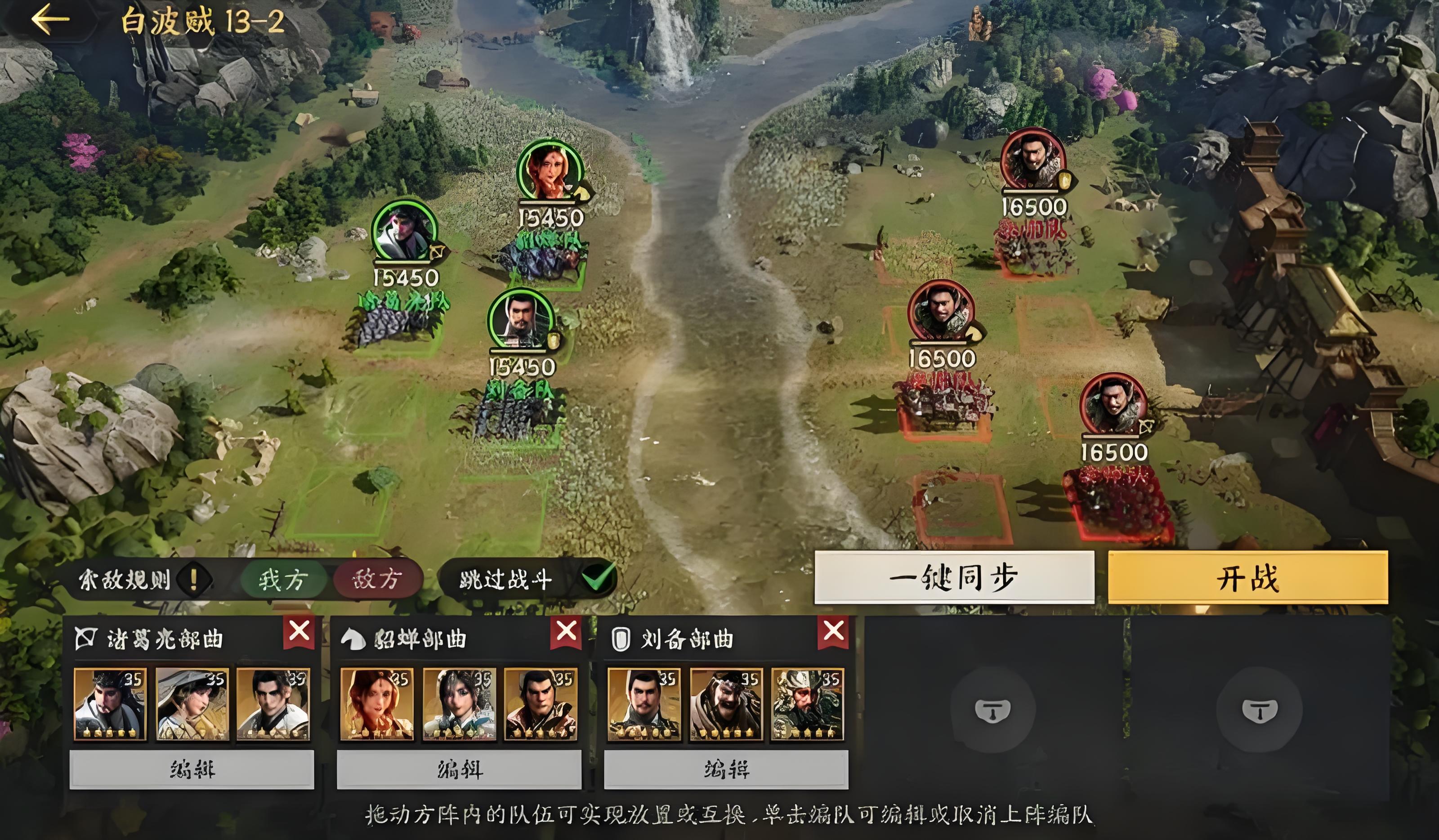 3、前期推荐张飞黄忠蔡文姬组合,张飞嘲讽吸引火力黄忠输出蔡文姬治疗,张飞未解锁可用关兴替代但战损会相对更高些。