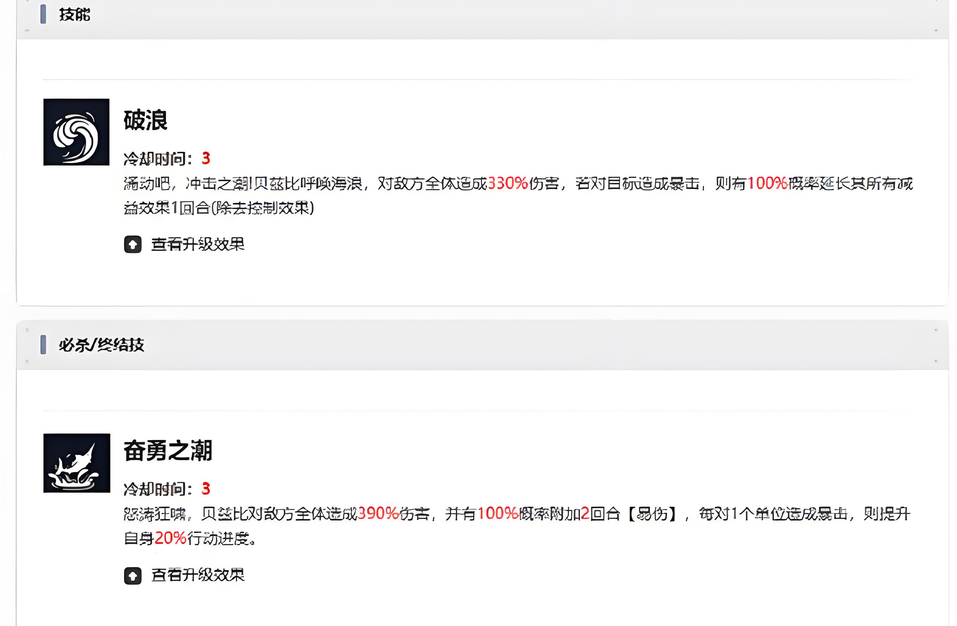 5、终结技奋勇之潮冷却3回合,对敌方全体造成390%伤害,100%附加2回合易伤,暴击还能提升自身行动进度。