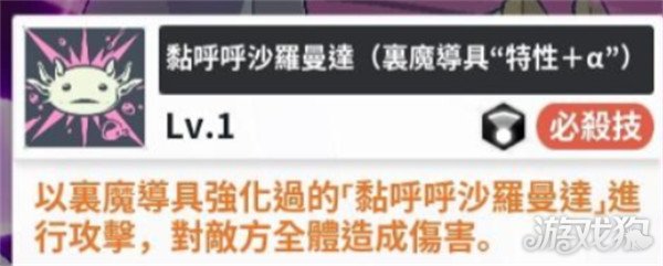 莎莉技能1的效果是一个单体伤害的效果,这个技能叫做拍击,使用这个技能的时候,查理会发出一道命令,此时就会用黏黏的沙鲁曼达来攻击敌方的一个目标,然后在攻击完成之后给自身的话带来一定的吸血效果,也就是将敌人身上造成的部分伤害数值会转化为莎莉,她自身的生命数值,所以在使用攻击越多的情况下,能够吸到的对面的生命数值就越高。