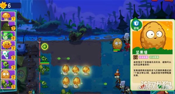 坚果墙是爆竹火枪手阵容的核心防线。其生命值高达4000点,消耗仅2点阳光,冷却时间短,可在多波僵尸进攻中持续构建防御。放置在第一排可有效吸收伤害,为后排争取输出空间,是高性价比的防守首选。