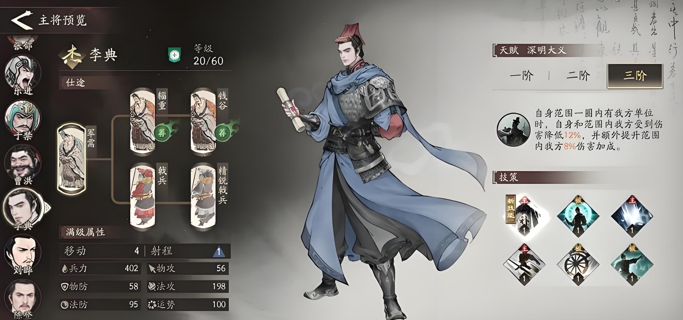 三国望神州李典作为魏国阵容中的重要辅助武将,其强度与使用技巧常被玩家关注。了解他的核心定位技能效果养成策略及阵容搭配,能帮助玩家在开荒到后期战斗中充分发挥其价值。本文将围绕这些关键内容展开,为玩家提供全面实用的攻略,助力合理运用该武将提升团队整体作战水平。