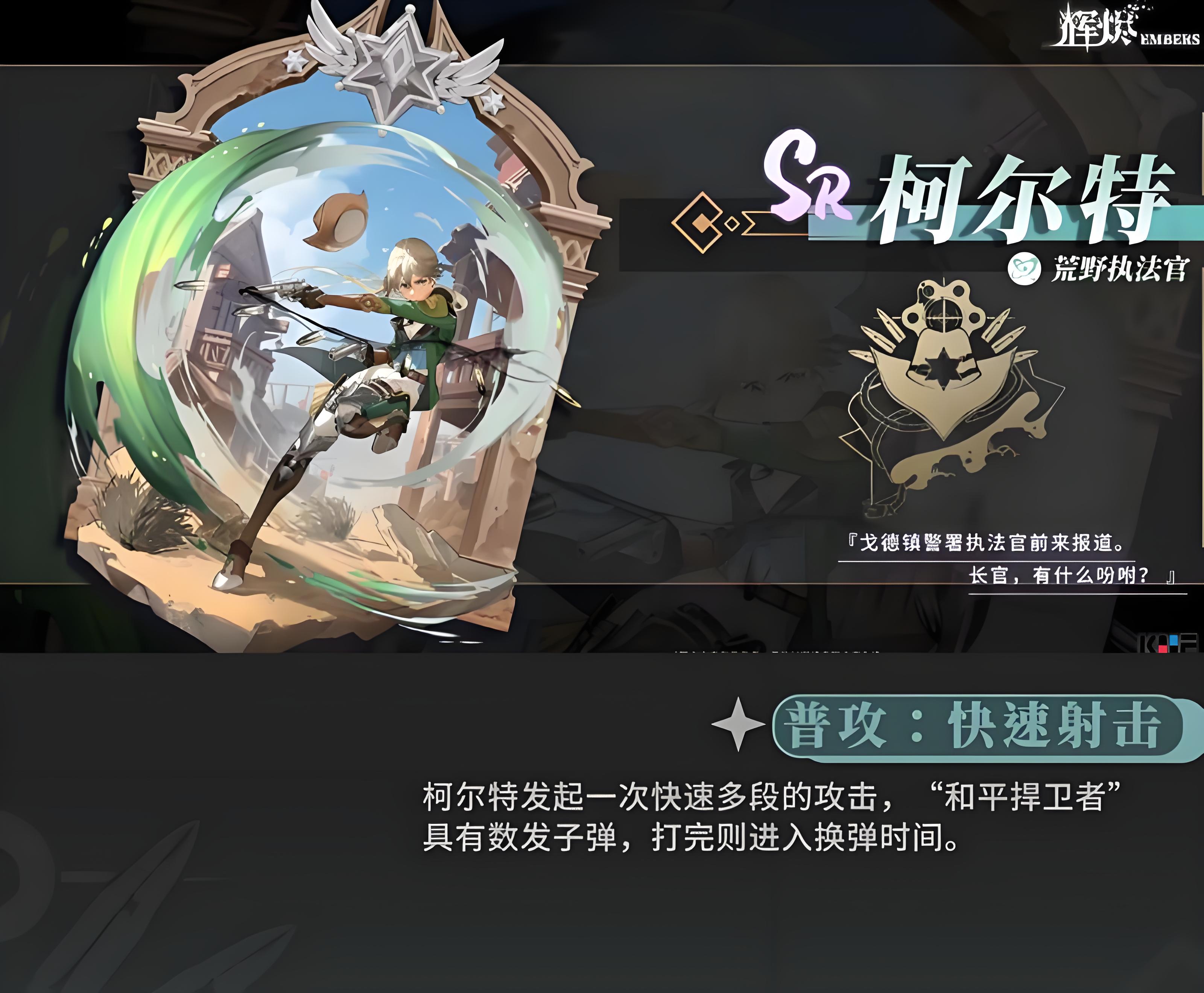 辉烬柯尔特作为SR品质远程物理输出角色,凭借稳定的输出机制和灵活的技能设计,成为水系配队中常见的常驻成员,不少玩家组建初期队伍时都十分关注他的综合强度与实战表现。了解他的技能细节、弹药与火力支援系统的运作方式以及输出节奏的把控技巧,能帮助玩家更好发挥其持续作战能力,本文将详细整理相关要点为使用该角色提供参考。