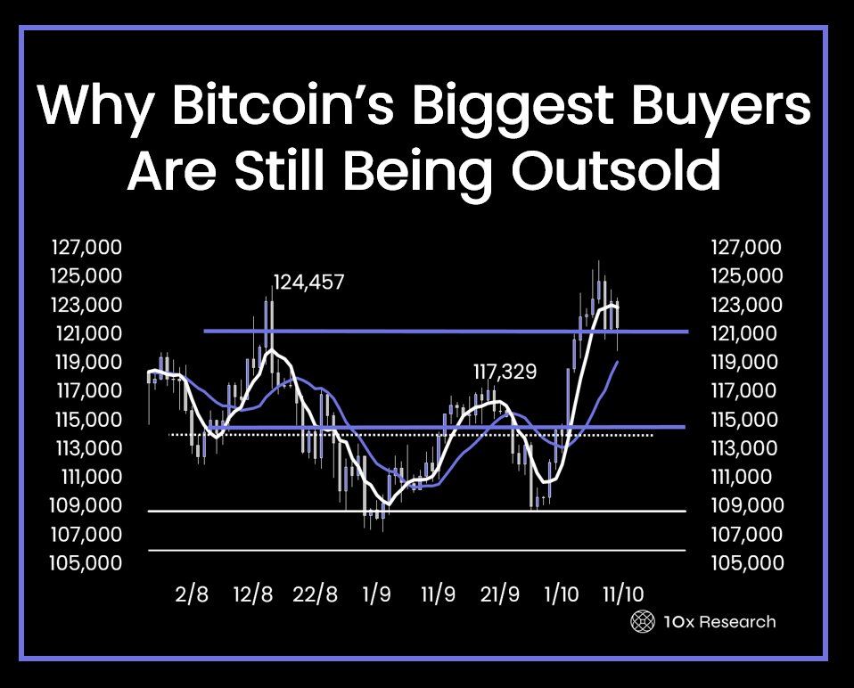 10x Research分析师指出,大型机构投资者正在积极囤积比特币。过去几周以贝莱德IBIT为首的比特币ETF强劲资金流入便是明证。与此同时,早期采用者(即中本聪时代的巨鲸)正趁价格强势获利了结。这种动态表明市场结构正在转变,机构深度参与正抵消散户热情。