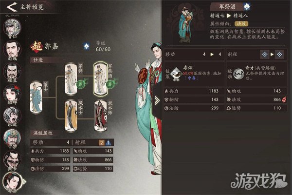 控制型可以选择类型比较少,但是强度还是非常不错的,它们就是郭嘉和贾诩,郭嘉的料敌机先能造成菱形范围松懈与伤害,距离越远伤害越高(最高+40%),搭配副将戏志才实测能一直输出,就是血掉得快得注意,二者形成的永动机组合在持久战中表现非常强势。