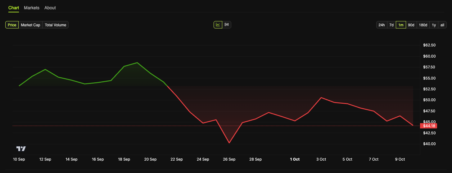 领跌币种中,Hyperliquid(HYPE)跌幅达5.5%至44美元;Astar(ASTR)重挫10%至1.7美元。