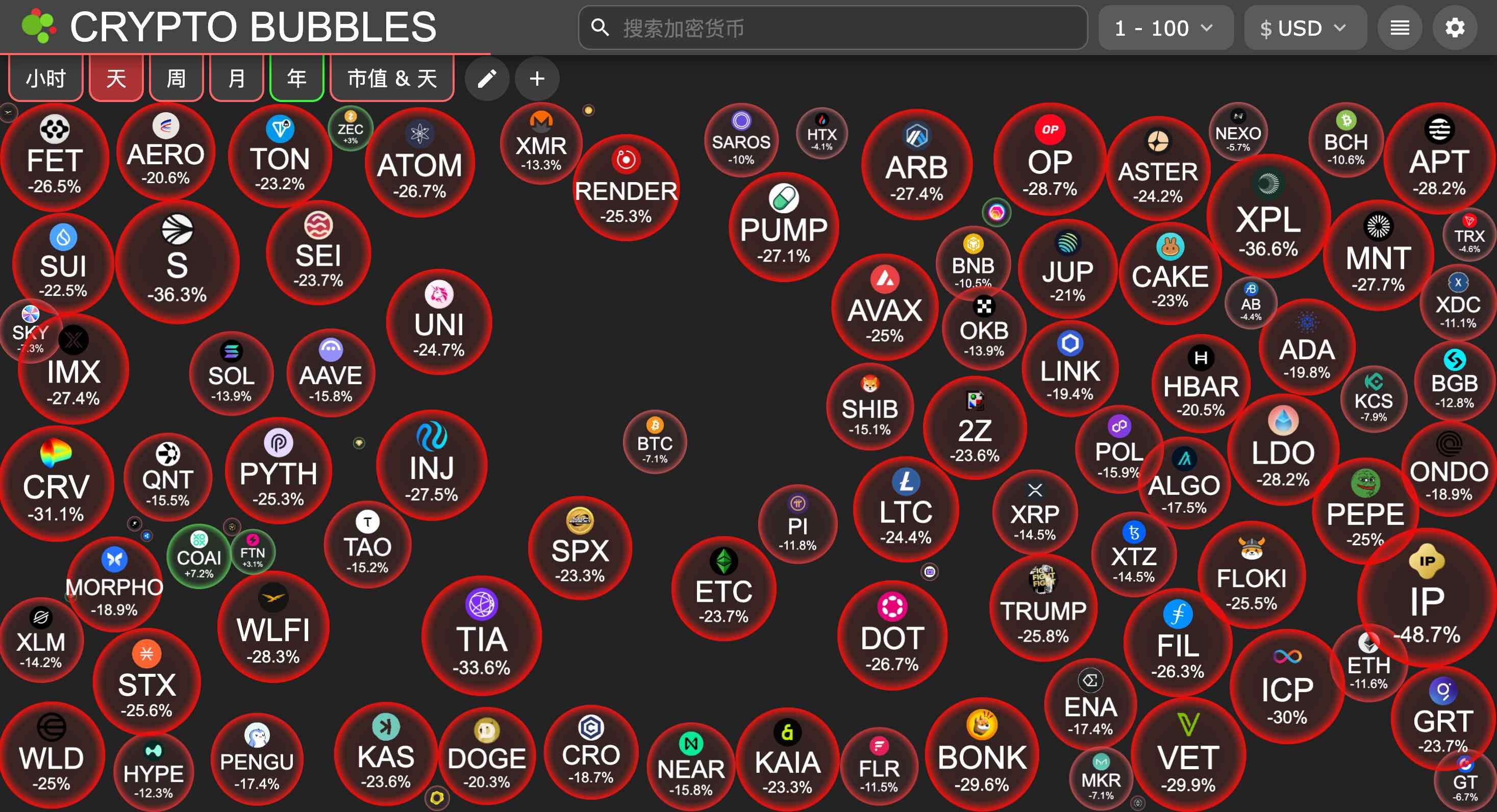 更为夸张的还是其他更小市值的山寨币,或受市场连环清算影响,多个山寨币短线跌幅超过 80% 甚至 90%。本人亲历过 312、519,但记忆中也未曾见过山寨币集体出现如此夸张的单日跌幅。