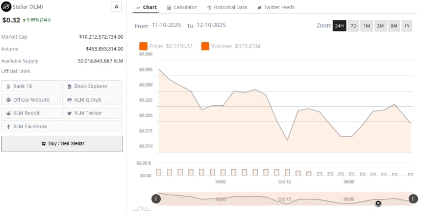 BraveNewCoin市场数据显示,XLM持续在0.30-0.34美元的压缩区间内交易,该区域历史上兼具阻力与吸筹支撑双重属性。成交量数据表明长期持有者和投机交易者都在持续调整头寸,换手率较第二季度的波动高峰已趋于稳定。