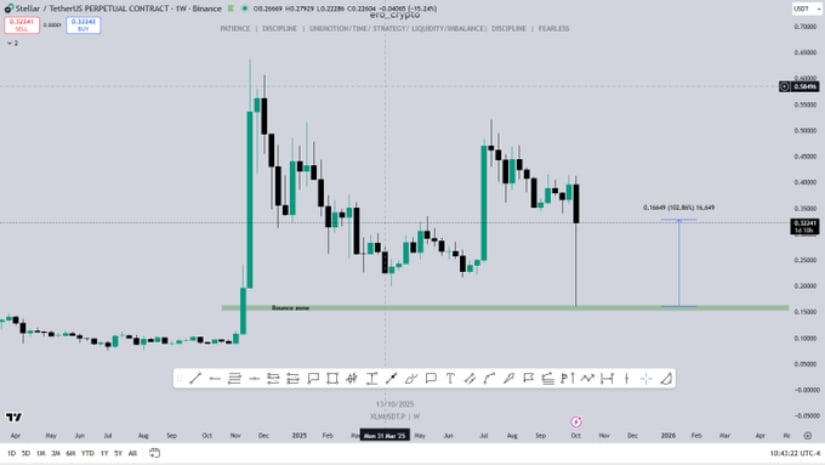 另一位分析师Erik则从短期视角补充了Brandt的长期观点,他将XLM的图表结构称为"我的魔法箱力量"的典型案例。其标注的图表清晰展示了价格在0.26-0.39美元明确界定的"魔法箱"区间内的震荡轨迹。