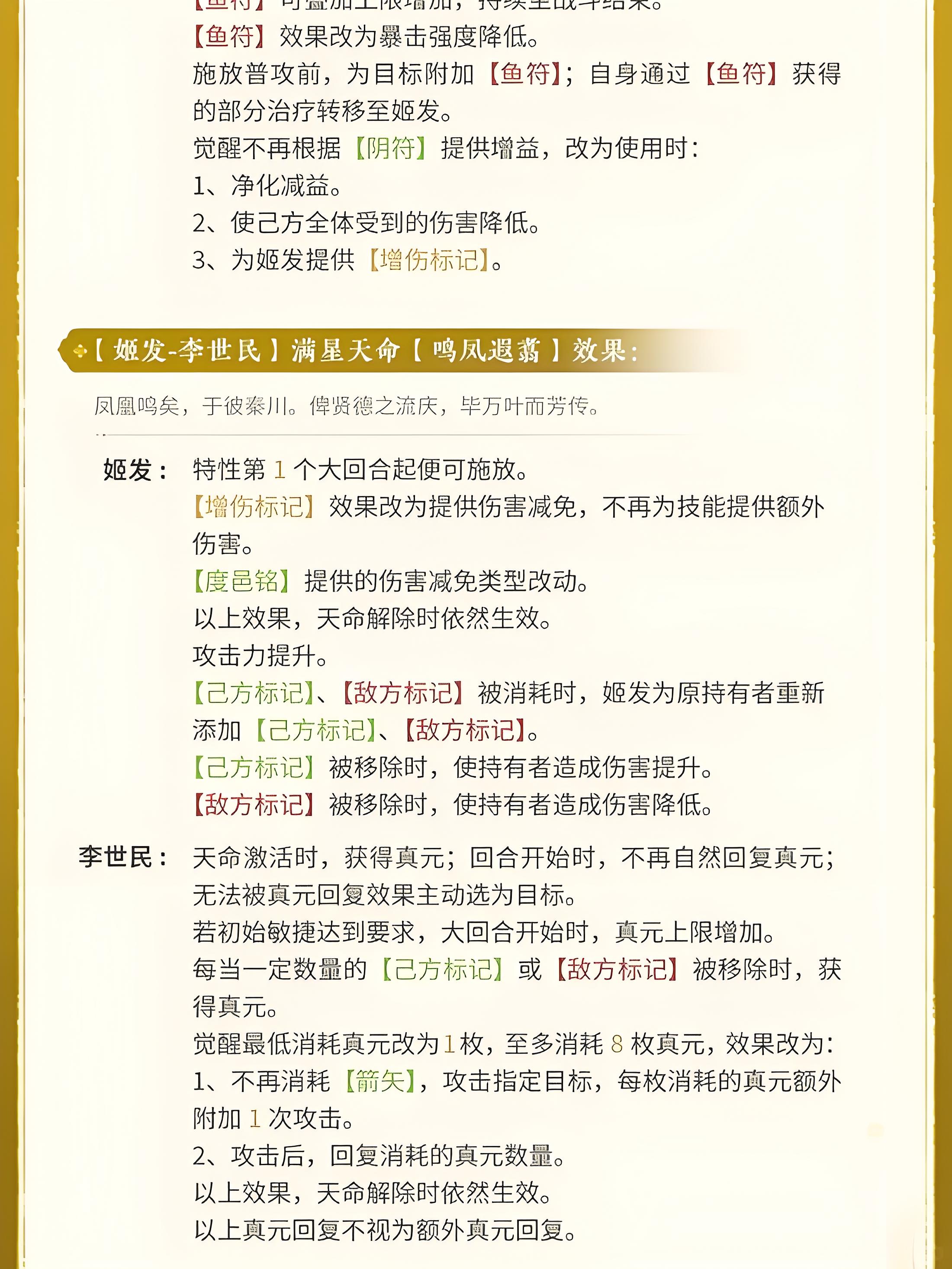 3、己方标记持有者放技能,目标为敌方标记者或姬发时,消耗对应标记,两种情况都能让姬发获得增伤标记。