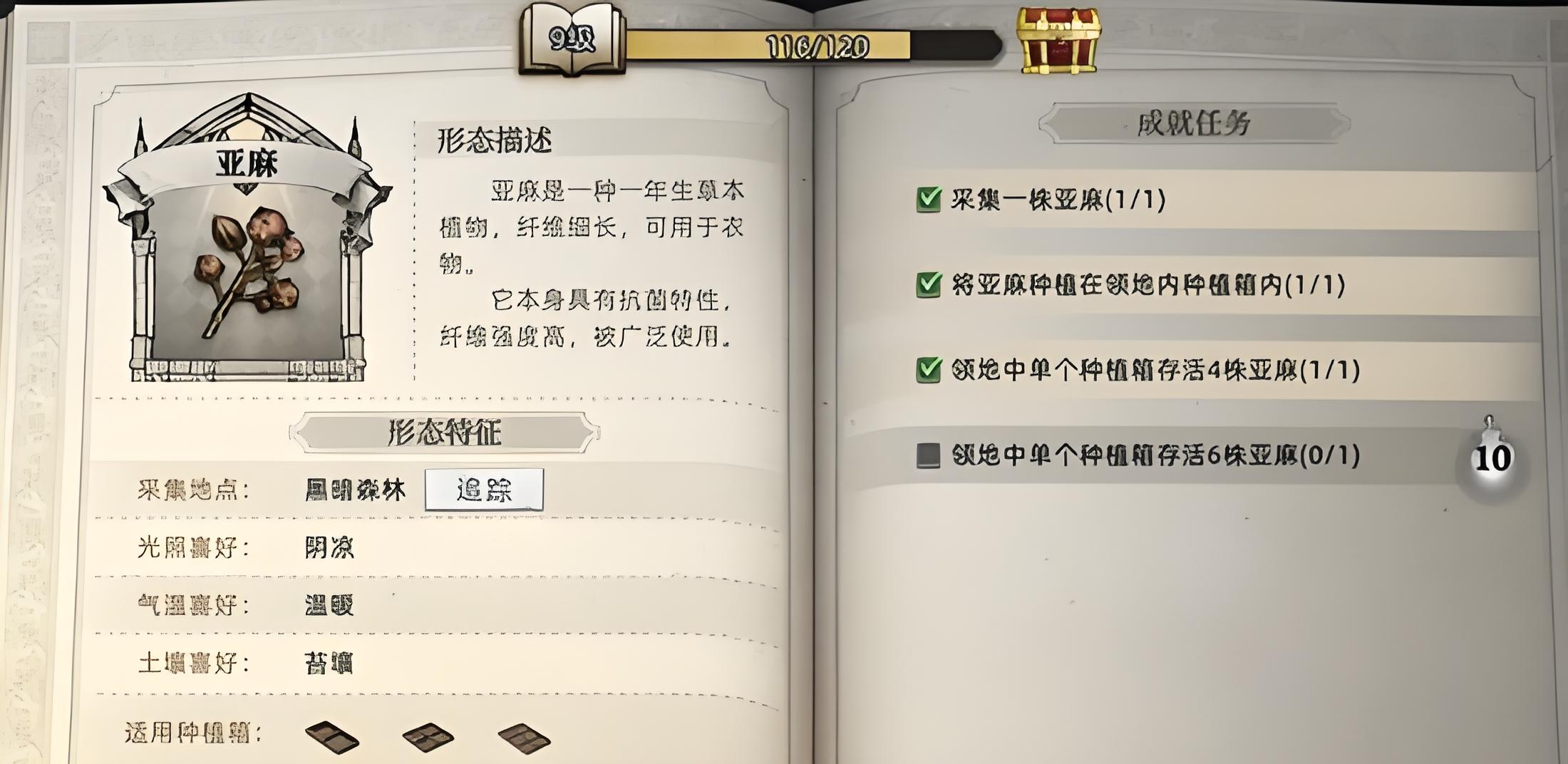 1、自然生长点集中在黑暗森林区域,该区域阴暗植被茂密,未解锁图鉴前需前往野外采集,通过交互键采集可获亚麻纤维。