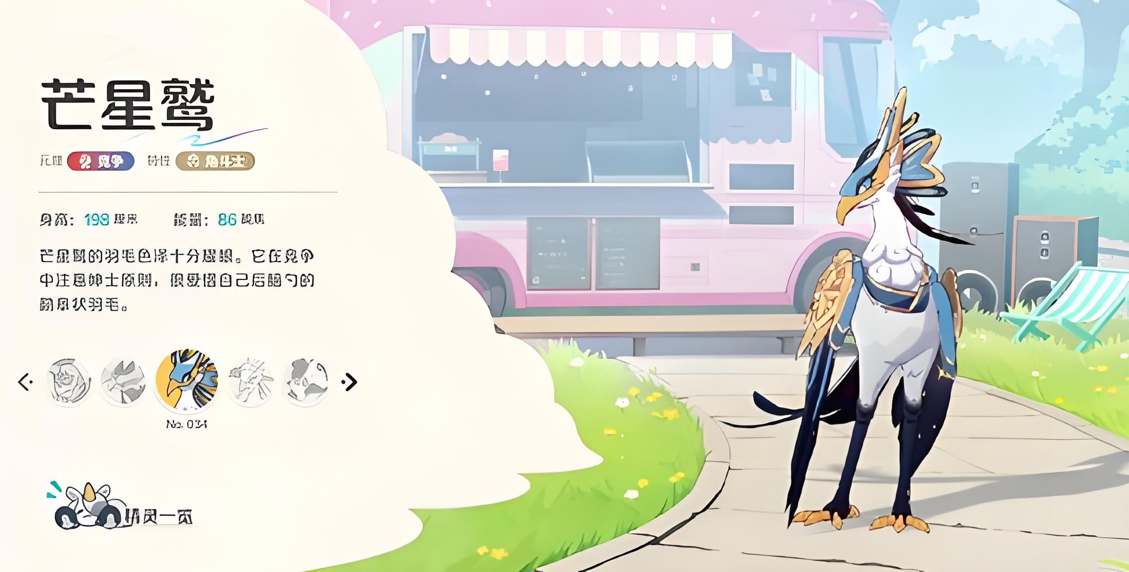 1、芒星鹫定位前排物理输出,身高198厘米能量86点,核心属性为竞争,场上每增一名竞争属性精灵,其攻击速度就提升,多竞争单位阵容中能快速高频输出。