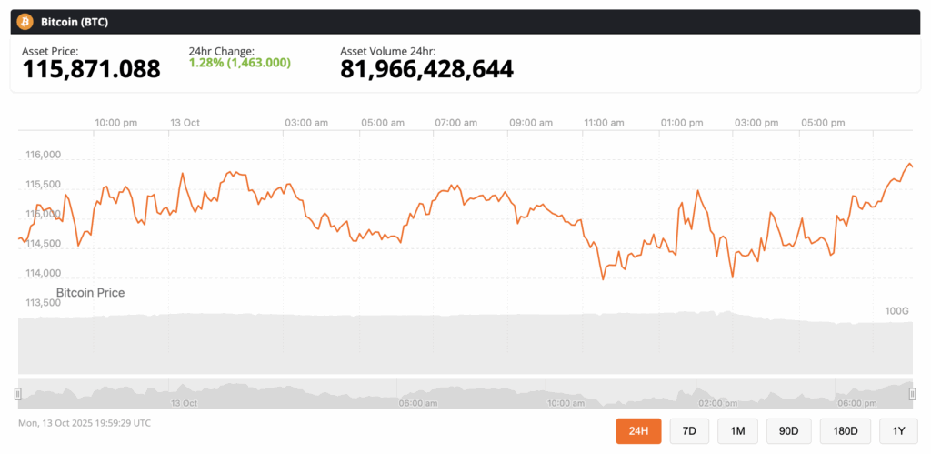 在经历了一个令风险资产剧烈震荡的周末后,比特币重新站上11.5万美元关口,但此次反弹更像是条件反射而非坚定看涨。触发因素来自政治层面而非加密领域:10月10日周五,唐纳德·特朗普在Truth Social发文宣称将从11月1日起对所有中国进口商品征收100%关税。这则新闻引爆全球市场,加密货币遭遇杠杆绞杀——比特币一度暴跌至10.2万美元,以太坊滑落至3800美元下方,直至逢低买盘进场。