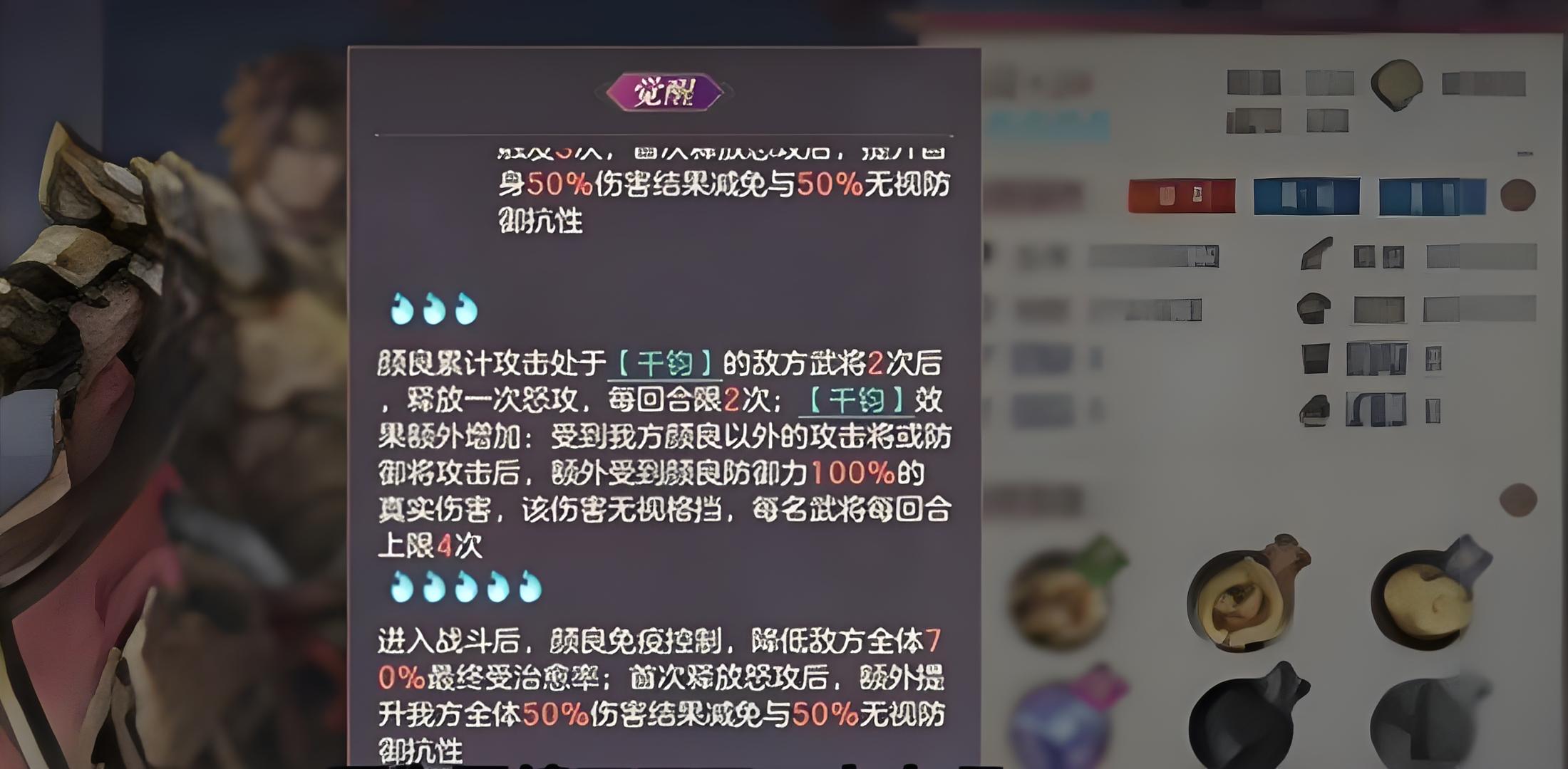 4、觉醒后累计攻击千钧状态敌人2次可额外释放怒攻,同时免疫控制效果并降低敌方治愈率,首次释放怒攻还能提升全队减伤与无视防御抗性。