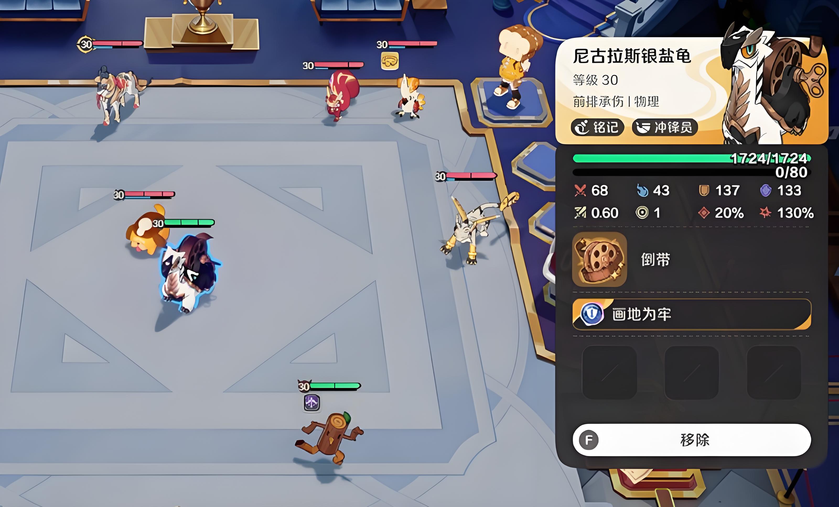 1、大海龟战斗时自动冲锋至前排成为敌方首要攻击目标,核心技能画地为牢限制敌方移动分割战场。