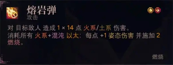 核心特性:燃烧之火(需切鲁费学),迅捷火焰(燃烧),宇宙火焰(以太+燃烧),引燃(燃烧),以太循环(以太)