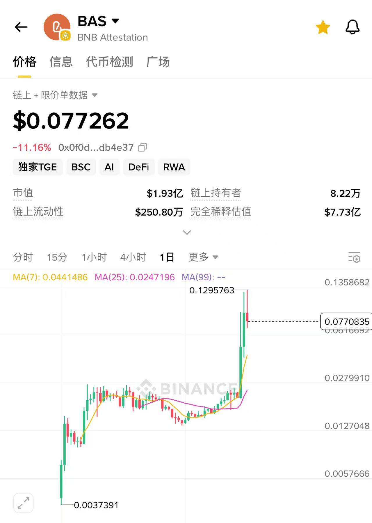 那么,在币安 Alpha 刷分领“低保”的当下,Booster 活动也值得参与——只需低成本完成指定任务,也能获得代币空投。 这两天币安 Alpha 板块价格持续暴涨的 BAS 代币就在 Booster 活动中有对应任务。据统计,按照当前价格,完成上个月 BNB Attestation 全部任务,最少可获得 1719 枚 BAS 代币(部分任务为随机抽取用户获得代币),价值超 130 美元,且参与过程磨损极小。