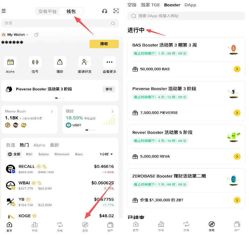 所有符合币安 Alpha 积分要求的币安无私钥钱包用户均可参与加速器币安 Booster 活动, 参与活动无需消耗币安 Alpha 积分。 具体活动界面入口如下图:打开币安钱包后,点击下方“发现”进入 Booster 活动界面。