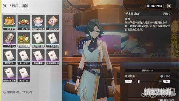 可购买菜肴:栎木蜜饼、沙丁布卡、特浓奶昔刨冰、扁竹花花片、烈日、荣耀烤肉套餐。